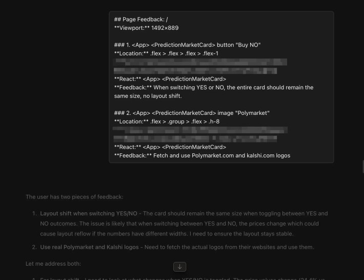- Model matters. When I asked AI to update the Polymarket and Kashi logos, only Claude Sonnet 4.6 fetched the correct icons from the internet.
