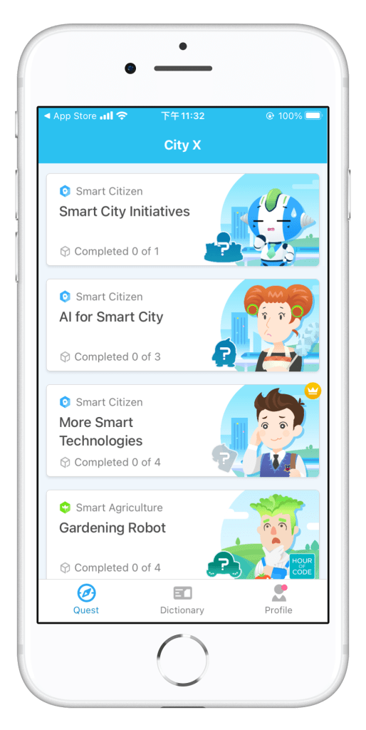 Coding Galaxy City X is a mobile learning platform that helps students ages 10–16 understand smart city technologies through interactive and gamified experiences.