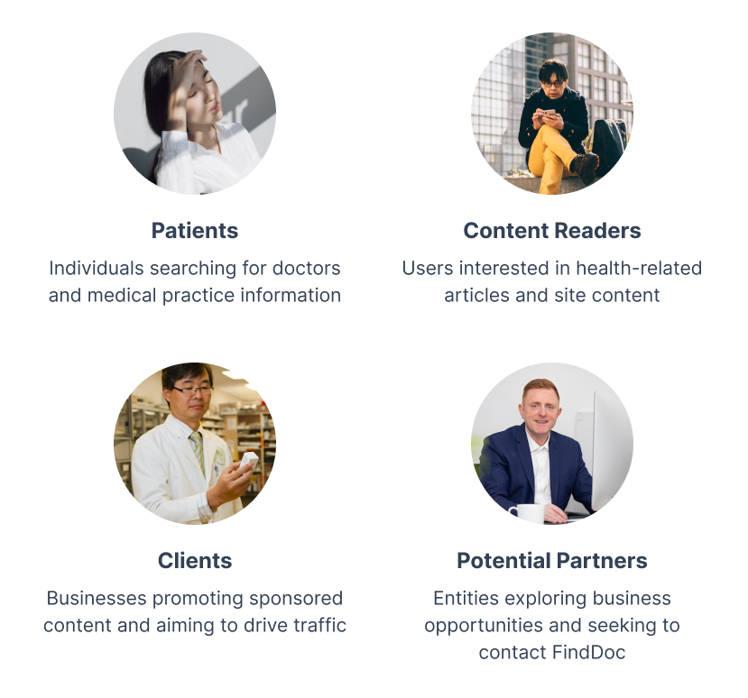 Before jumping into design, I invested time in understanding the business model. Through 1-on-1s with stakeholders, I learned that FindDoc’s website wasn’t primarily a revenue driver; the business runs on appointment bookings and advertising. It was a credibility and lead-generation tool for pharmaceutical partnerships. This insight reframed our success metrics: