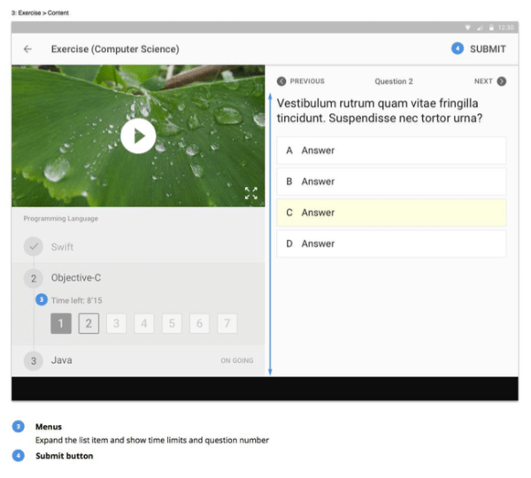 The app offers five question types: multiple-choice, true or false, fill in the blanks, matching and ordering. Due to time and budget constraints, we opted for a tap-and-go interaction instead of a more intuitive drag-and-drop feature.