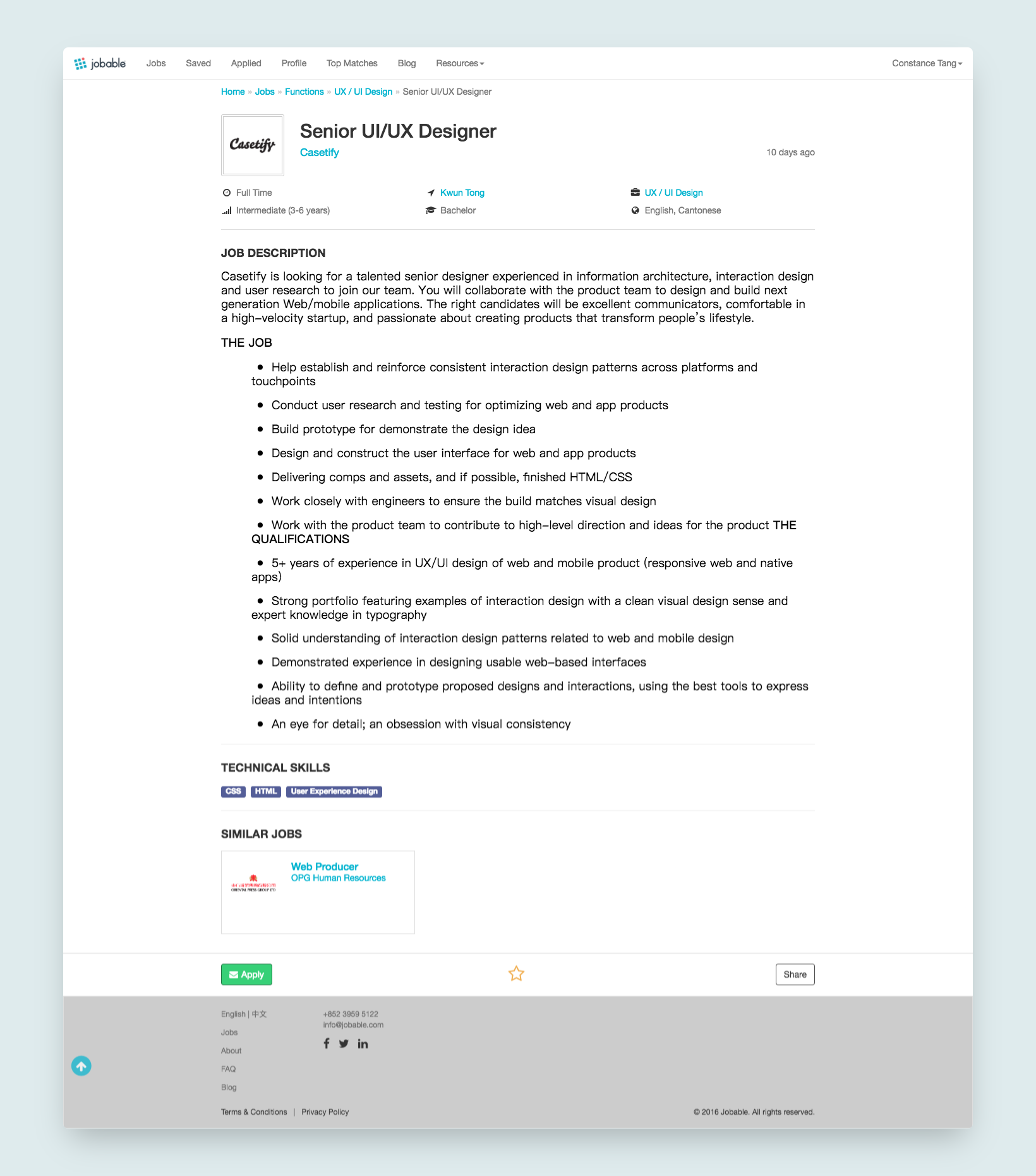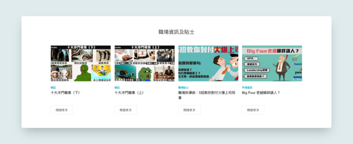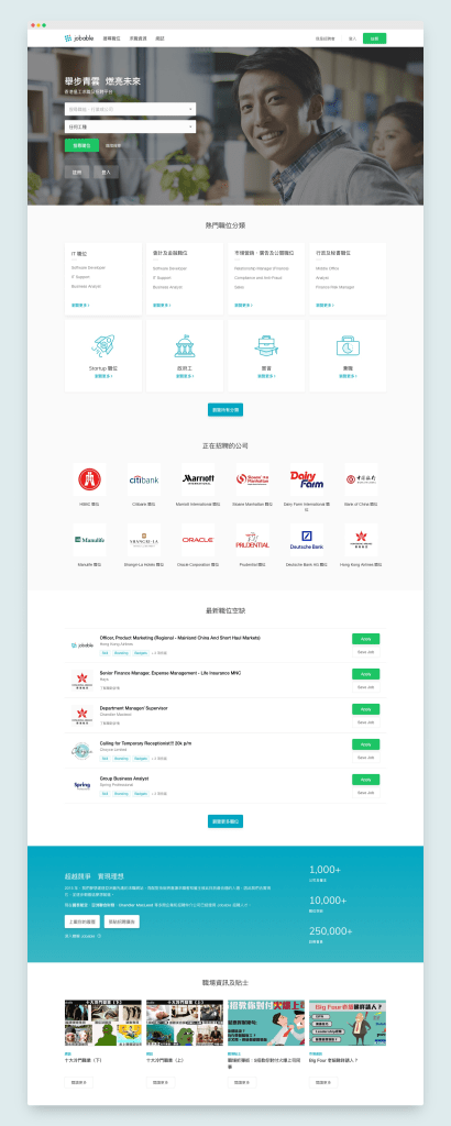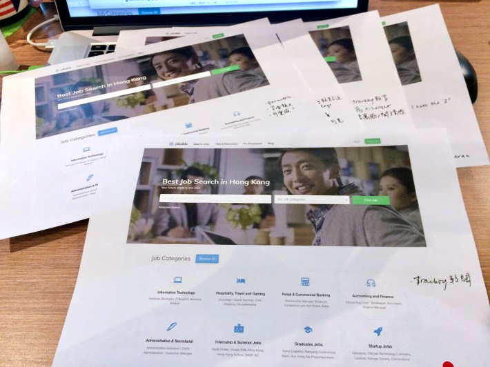- Updated the website with photo of real people for a more professional look. Added translation in Chinese and English, as well as a formal tagline. Some minor copies may include dialects like “搵工”.