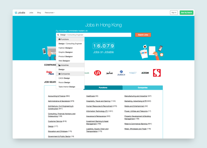 Establish a professional and credible image. Initially, the number of job vacancies was shown in the hero section above the fold. However, as it was not essential for searching, I moved it down along with the number of employers and members.