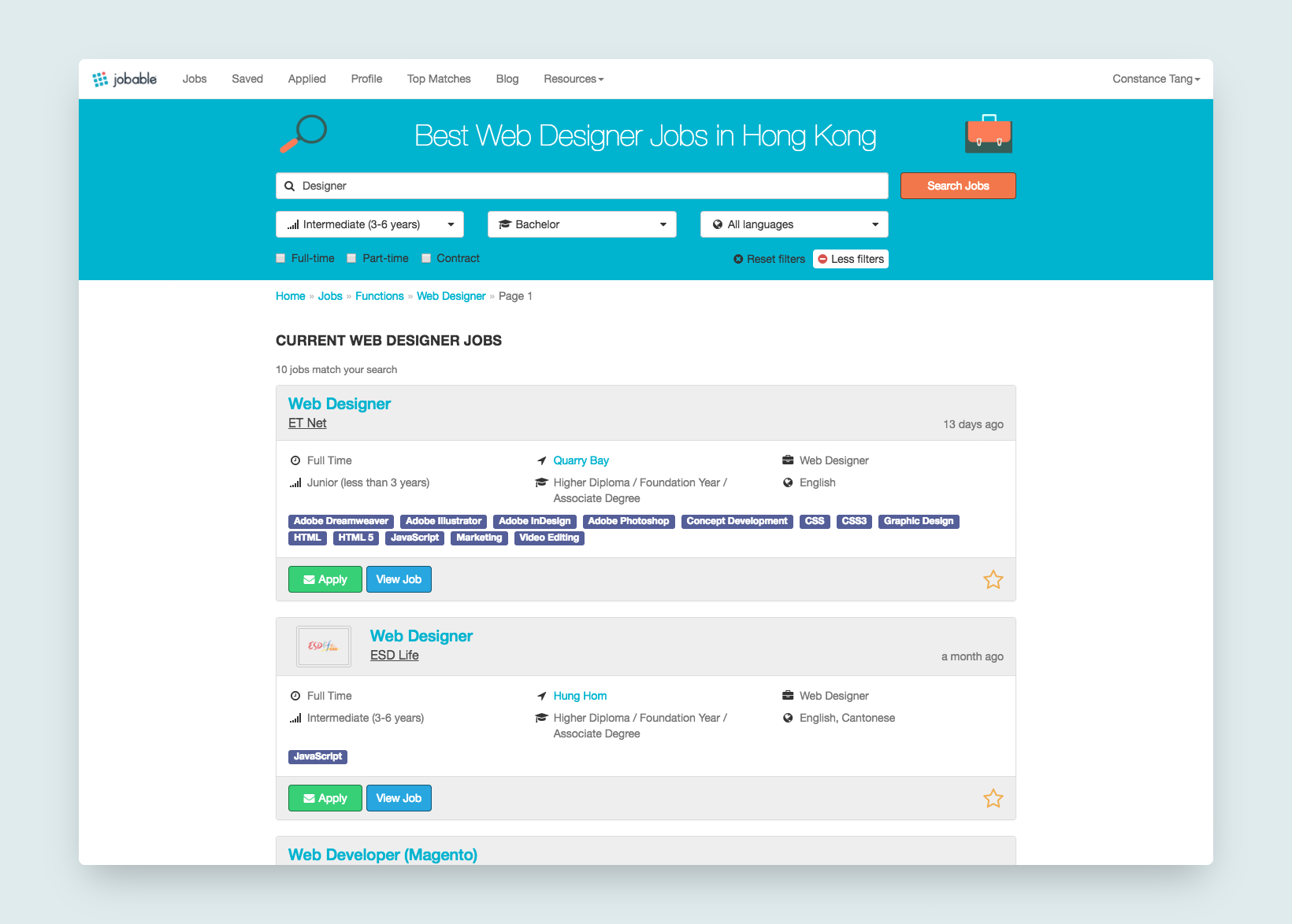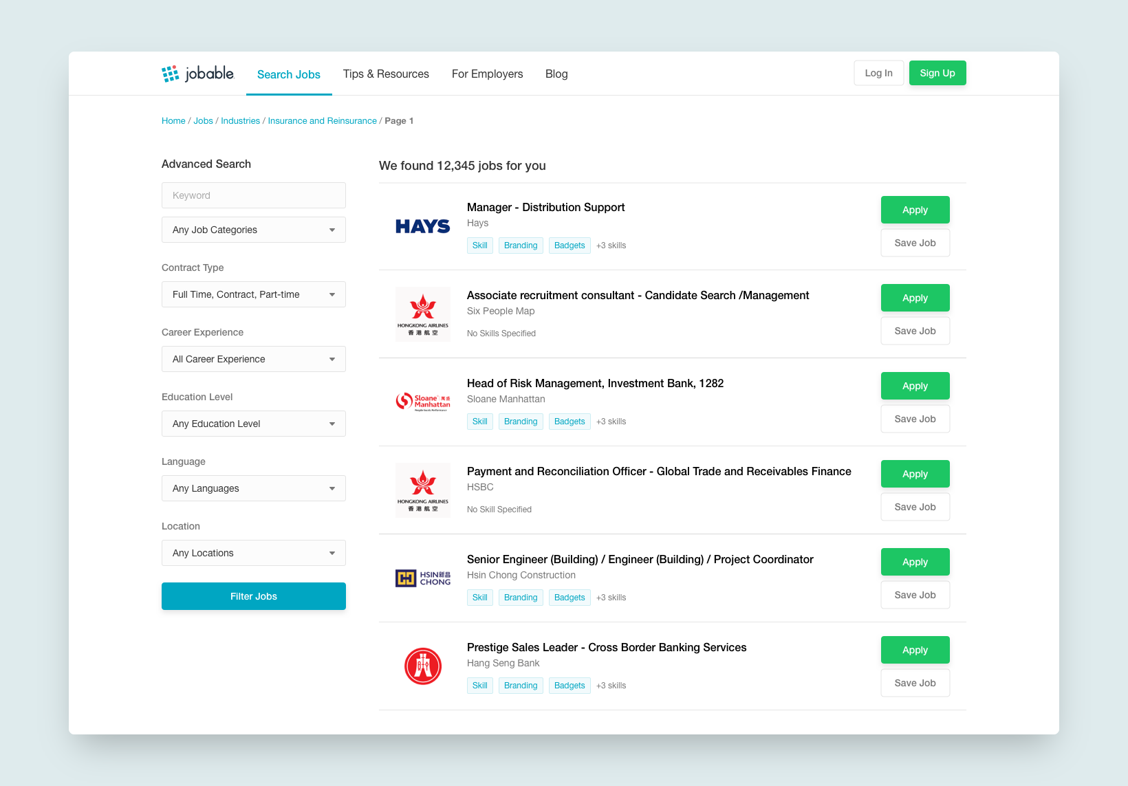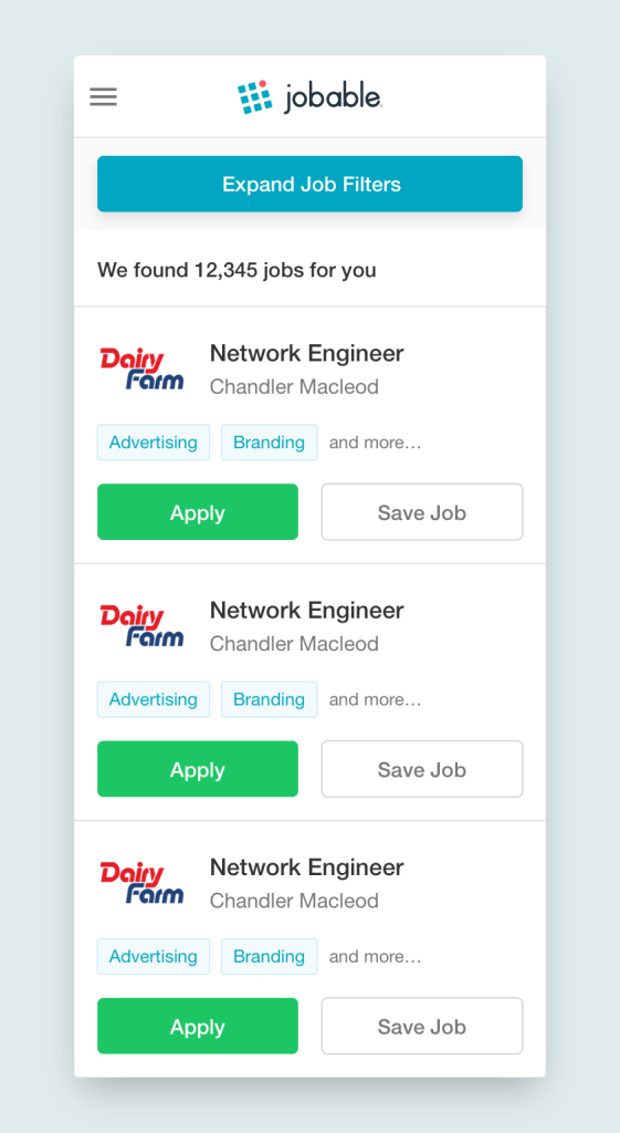 Update the Jobable job board site with new content and a design strategy to tailored to their target demographics. This will help improve the site’s professionalism and local appeal, ultimately leading to increased user engagement.