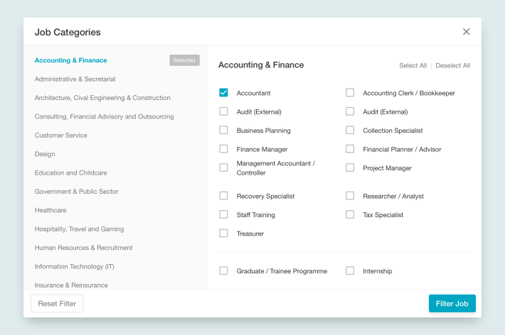 The landing page now features enhanced job categories to make it easier for job seekers to find what they’re looking for. We’ve included startup jobs, government jobs, and internships based on popular and recommended categories from our historical data. Users can conveniently search for specific positions using the search box, showcasing Jobable’s unique position as a job marketplace.